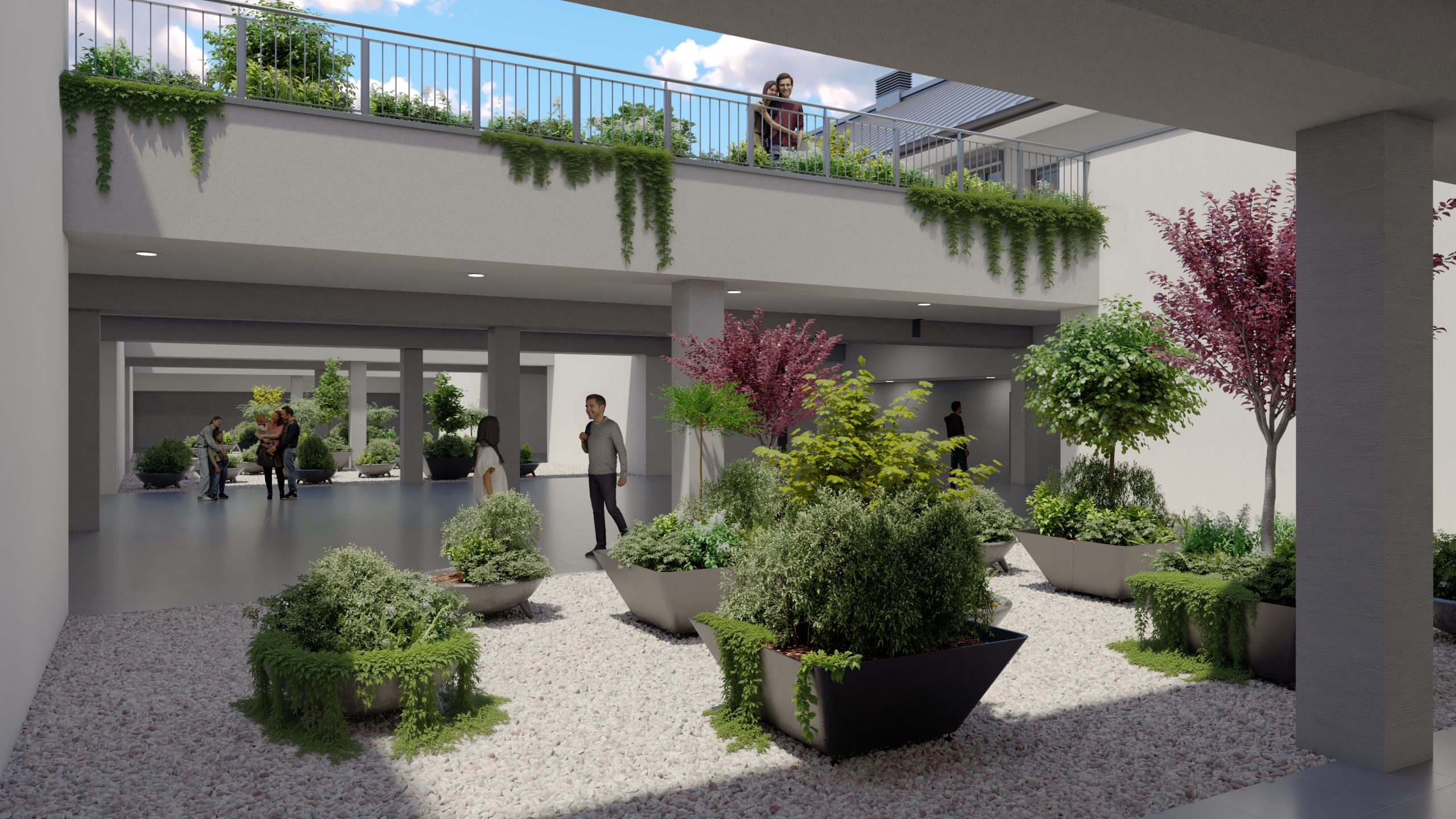 A földszinten 165 gépkocsibeálló készül, zárt beléptetőrendszerrel és kamerás megfigyeléssel, amely biztonságos és kényelmes parkolási lehetőséget biztosít a lakók számára. A közös területek között kerékpártároló található.