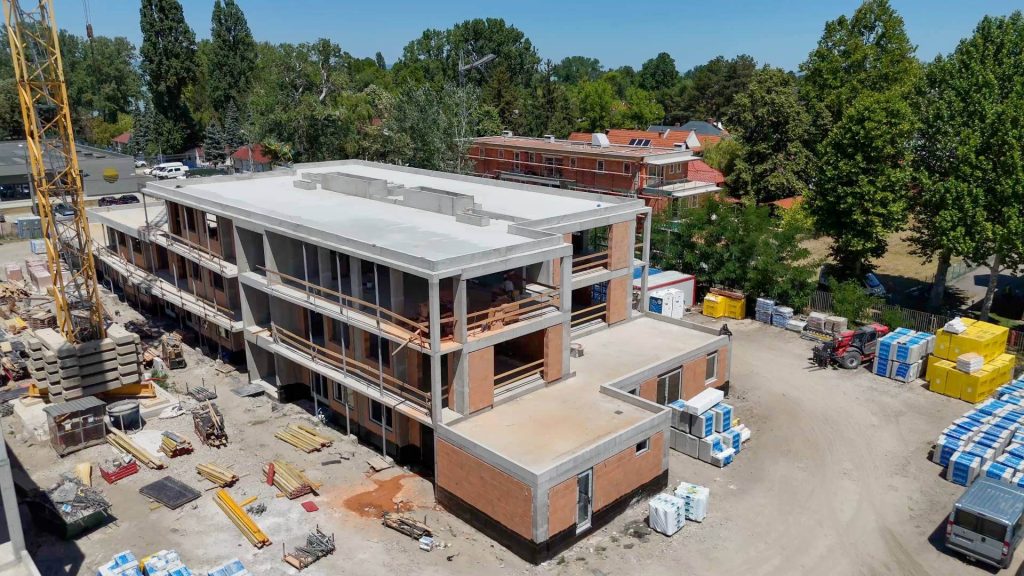 Fontos mérföldkőhöz érkezett a MyLelle Residence építése Balatonlellén: a két kétemeletes épületben kialakítandó 74 apartman szerkezetkész állapotba került. A fő tartószerkezetek elkészültek, a kivitelezés következő fázisaiban a homlokzat, a belső terek és a gépészeti rendszerek kialakítása zajlik majd.