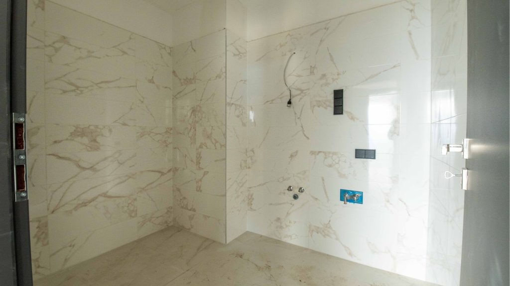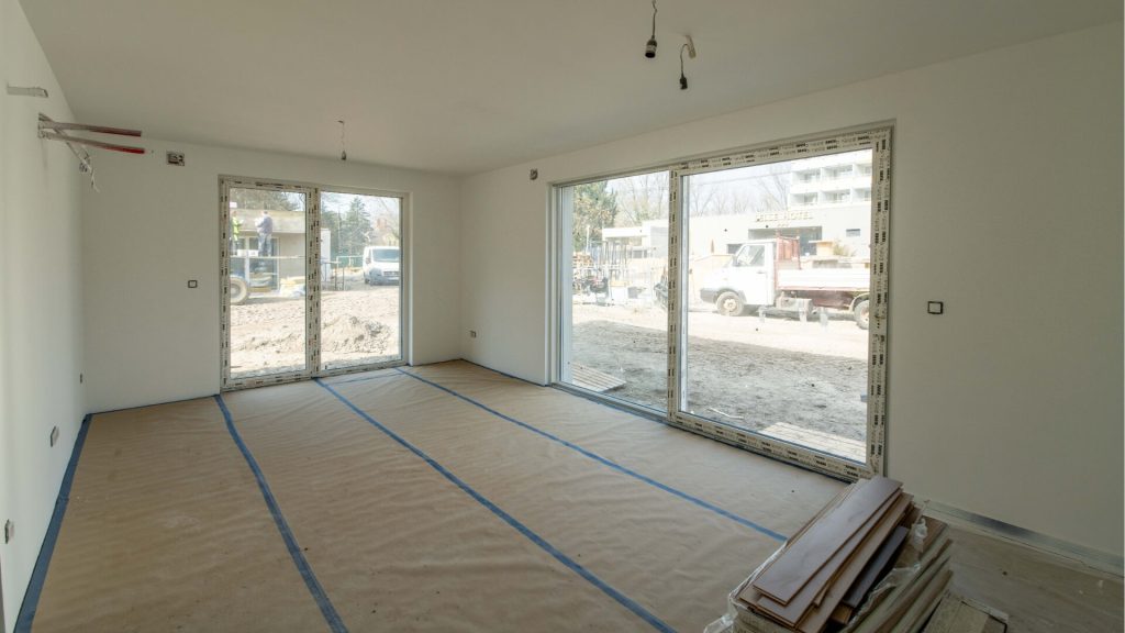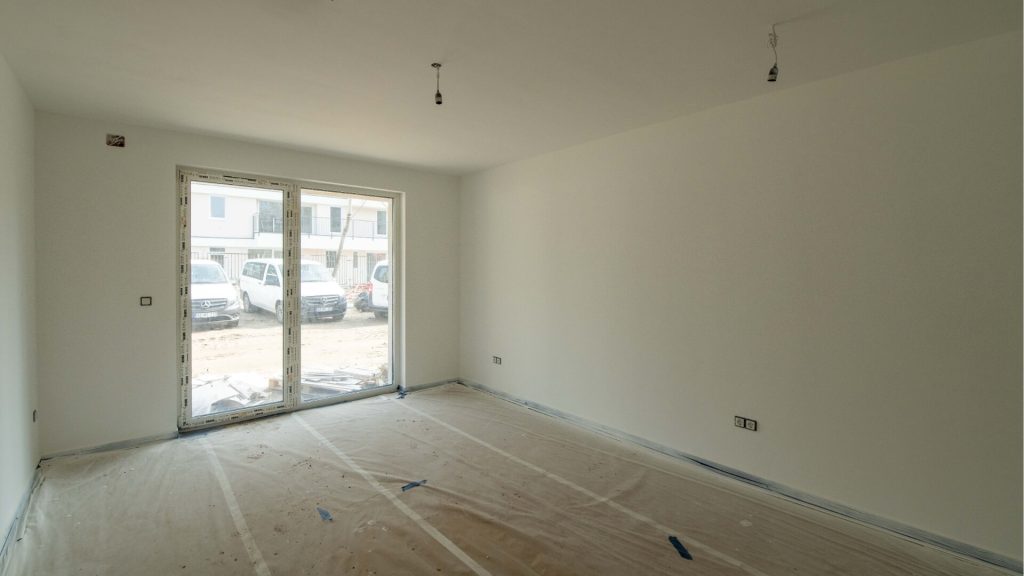 A lakásokban jelenleg festési és burkolási munkák zajlanak, több otthonban már a végleges felületek készülnek. A közösségi terek kialakítása is szépen halad, a festési munkák itt is megkezdődtek, így ezek a területek is egyre inkább felveszik végleges formájukat.