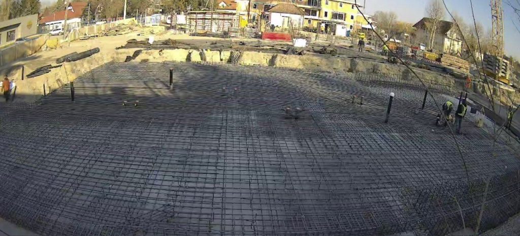 A „B” épületnél szintén befejeződött az alaplemez alatti gépészeti alapvezetékezés, jelenleg az alaplemez vasszerelése zajlik. Az első ütem betonozása február 25-én történik meg, a teljes alaplemez elkészültét pedig március 5-ig tervezi a kivitelező.
